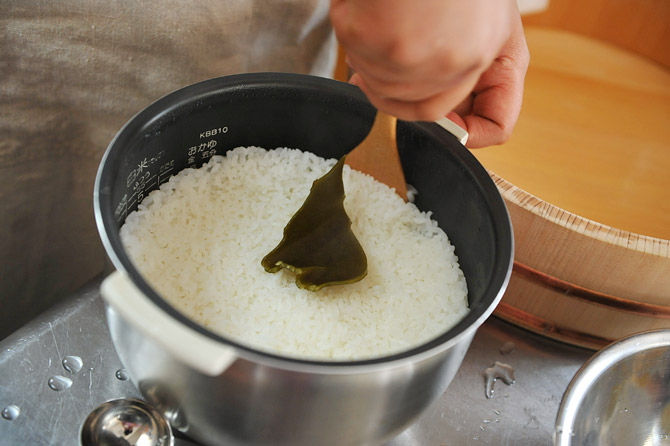 だし昆布を入れて、かために炊き上げています。