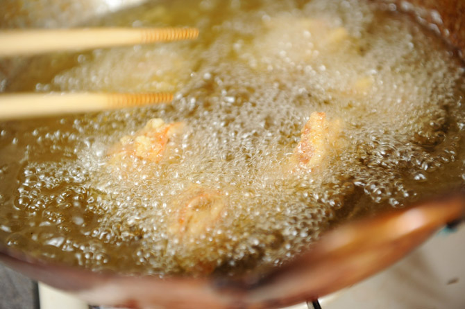 2〜3分ほど揚げて、うっすらときつね色になってきたら‥‥