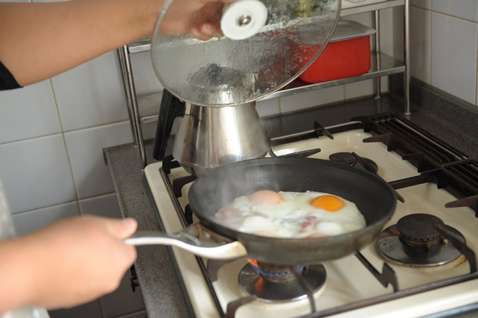 黄身の表面がうっすら白くなったくらいでふたをとります。