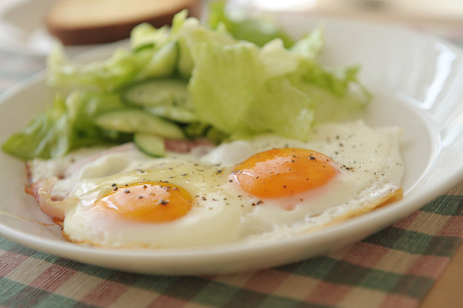 半熟のハムエッグと、サラダ。