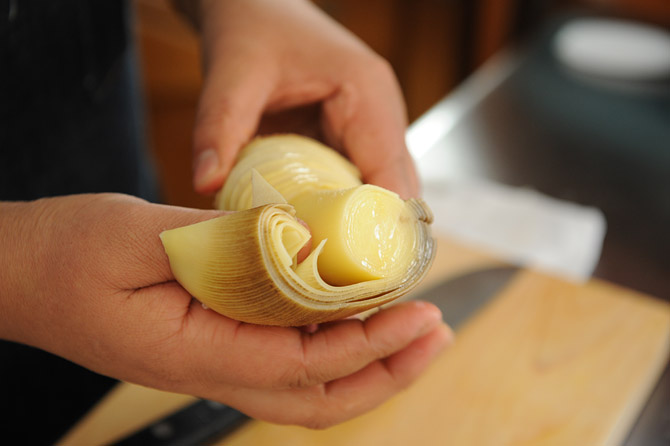 タケノコの水煮は、硬いところはとりましょう。