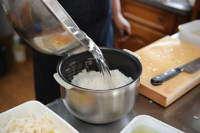野菜の下ごしらえの途中ですが、ご飯を炊かなくちゃ。
