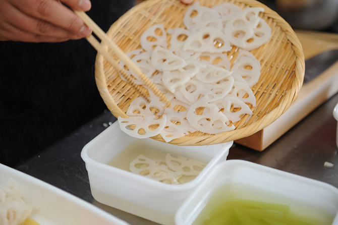 のこったレンコンは、ほかの具材といっしょに味をつけます。