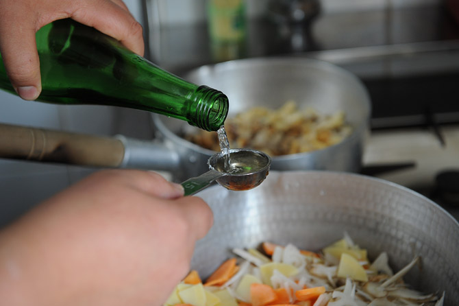 うすくちしょうゆ大さじ1、さとう大さじ1、お酒大さじ1。
