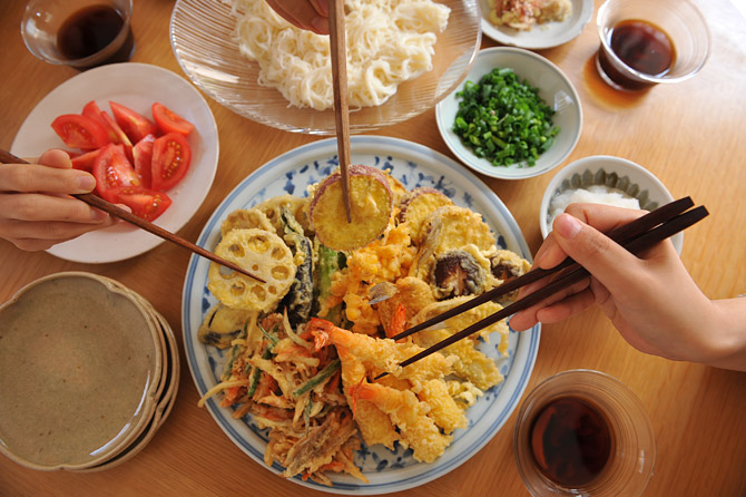 「野菜たっぷりの天ぷらと、