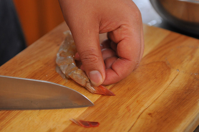 しっぽを斜めに落とし、とがったところの水を出しておきます。