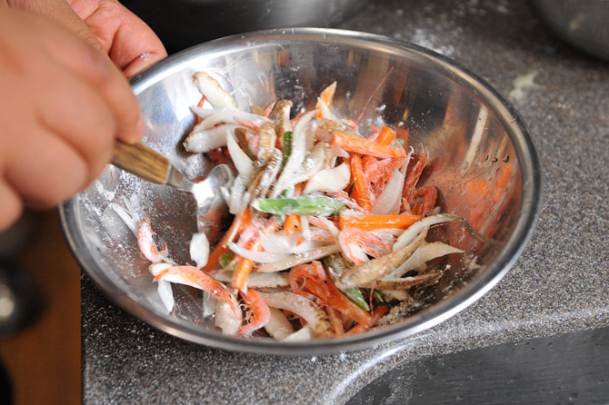 さっくり混ぜて粉を行き渡らせて。