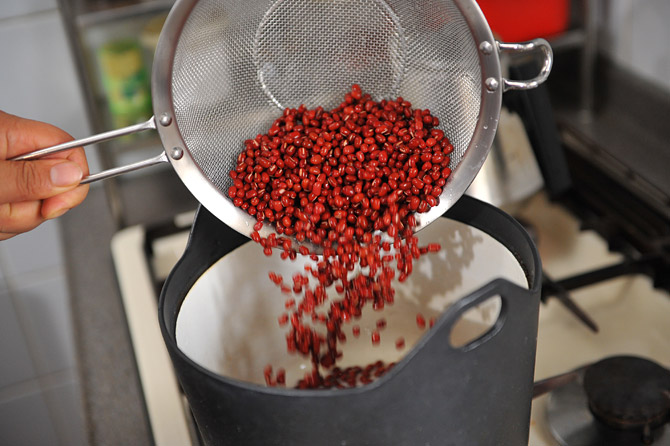 そしてお鍋に入れます。今回はほうろう鍋を使います。