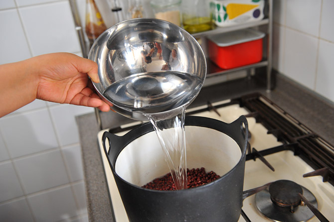 ふたたび鍋に、先に小豆を入れ、