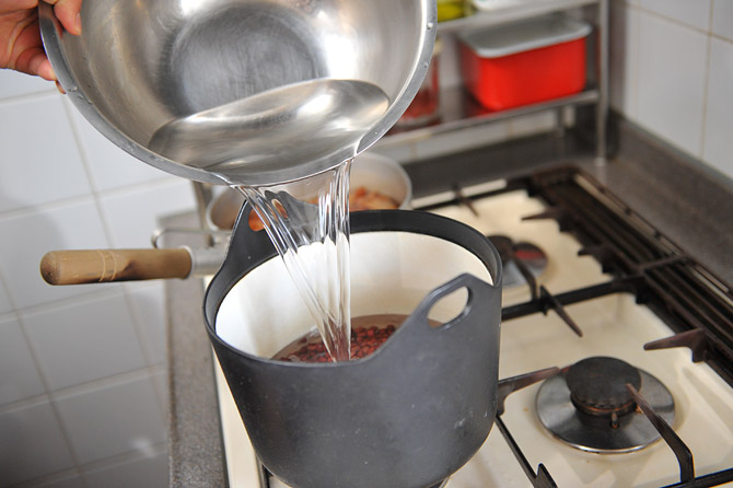 あずきが頭を出したら水を足してください。