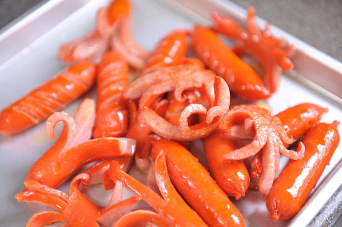 できた! カニさんやタコさんのウインナー。