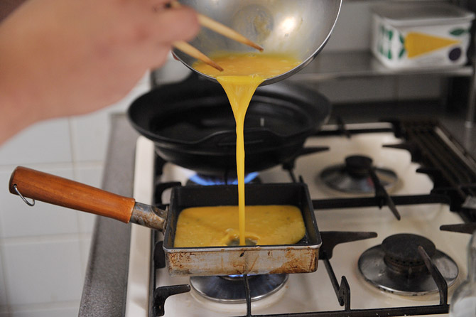 まず半分の量を、流し入れます。