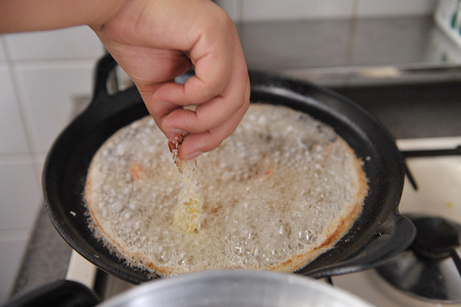 パン粉をつけて、あげます。