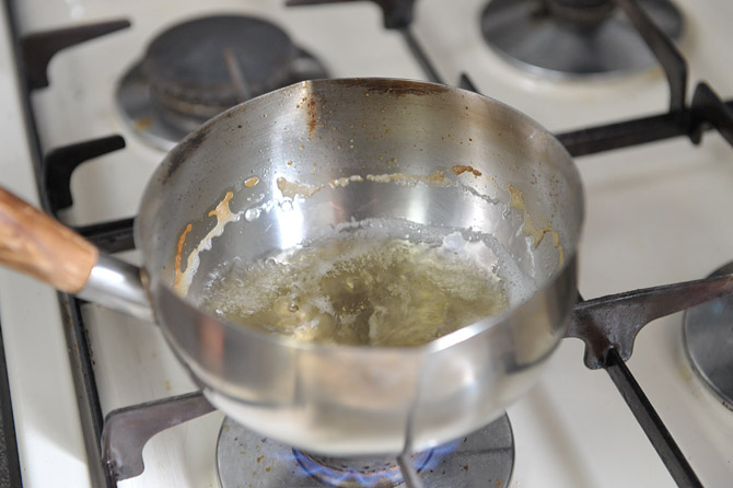 お酒とみりんをそれぞれ50cc、合わせて、火にかけ、アルコールをとばしておきます。