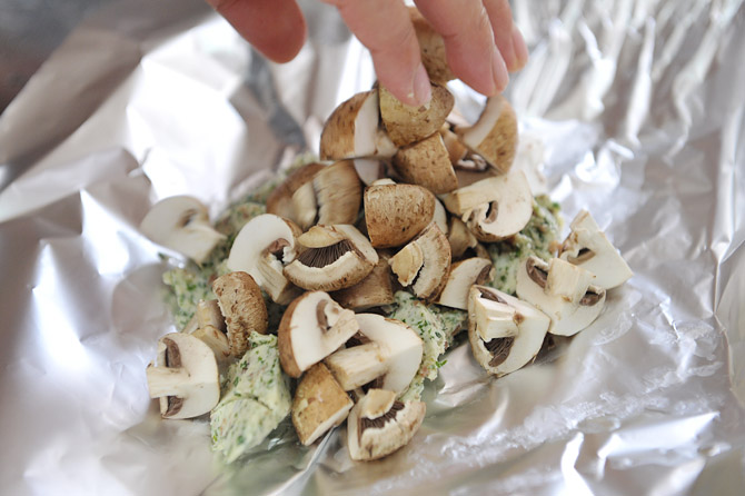 生のマッシュルーム! 20コを、1/4に切って入れました。