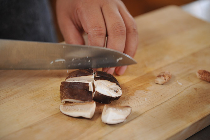 しいたけは、石づきをとって、8〜10等分くらいに。