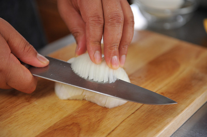それを、ヨコに、切りこみを入れます。
