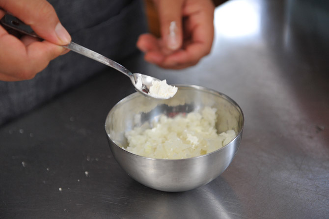 冷ましたら、小麦粉を小さじ3分の2、入れます。