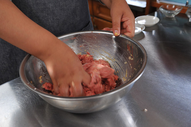 むらなく全体が混ざるまで、こねましょう。