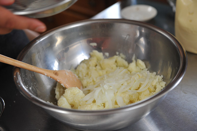 さらしたタマネギの、水を切ったものを加えて。