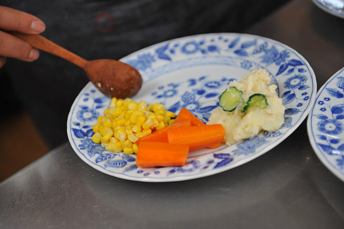 ポテトサラダ、ニンジンのグラッセ、バターコーン。
