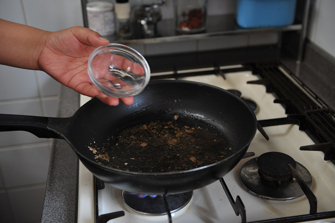 ソースになるおいしい部分は、フライパンにこびりついてますから。