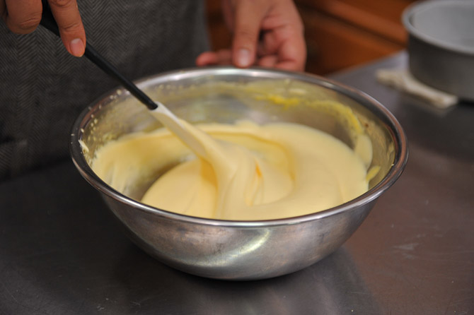 スパチュラ(ゴムべら)に持ち替えます。