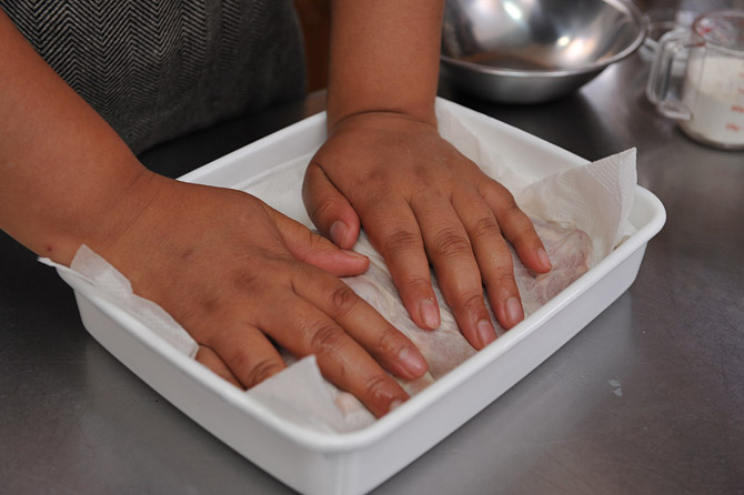 ペーパータオルで挟み込むようにして水気を抜きましょう。