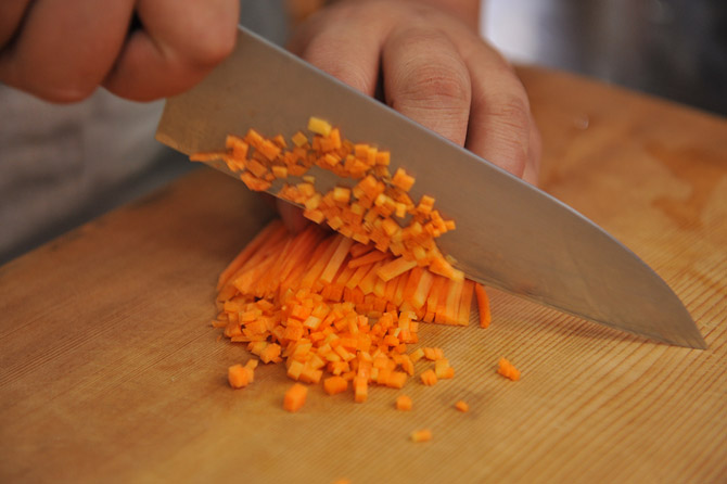 さらに小口で切れば、みじん切りになります。