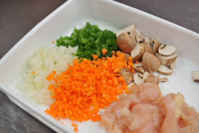鶏むね肉も、食べやすいように細かくしておきましょう。