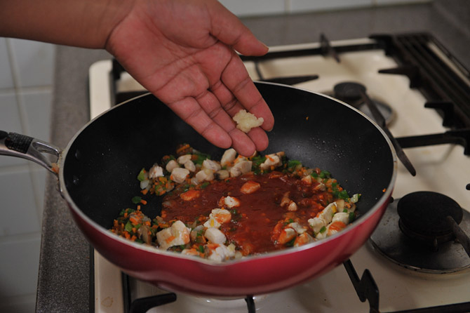 すりおろしにんにくを加えます。