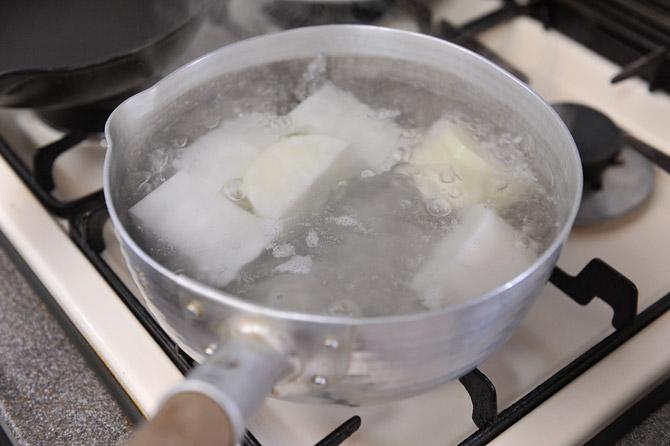 竹ぐしが通るくらいまで煮ておきましょう。