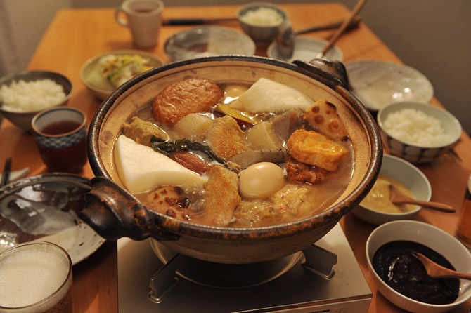 食卓にうつして、冷めないように卓上コンロであたためながら。