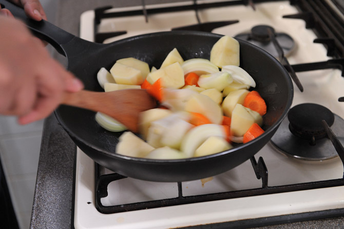 強火で、油が全体に回る程度にさっと炒めます。