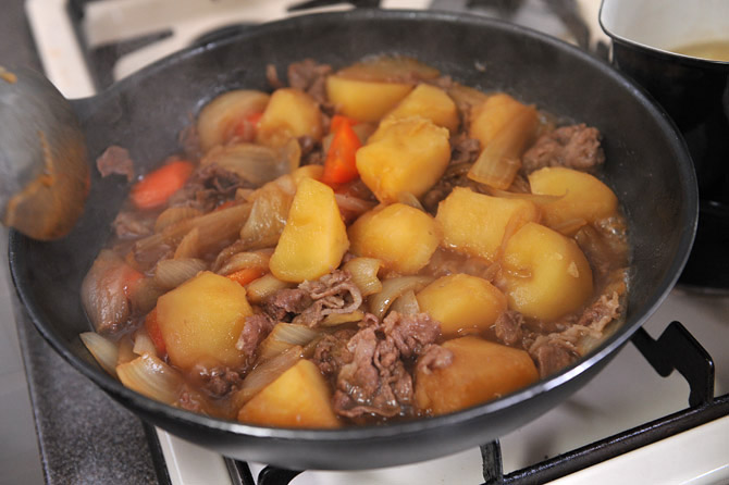 少し火を強め、よーく見張りながら、加熱をつづけます。