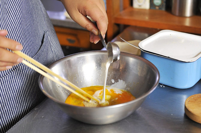 そこに、牛乳大さじ2を加えて、混ぜます。
