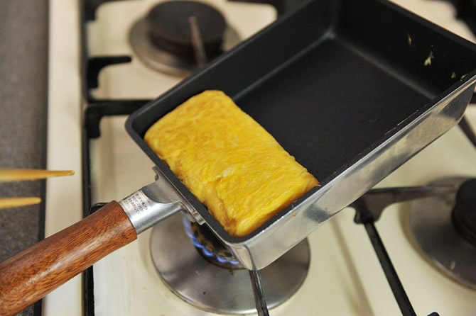 仕上げに、手前の壁に押し付けて、端も焼きます。