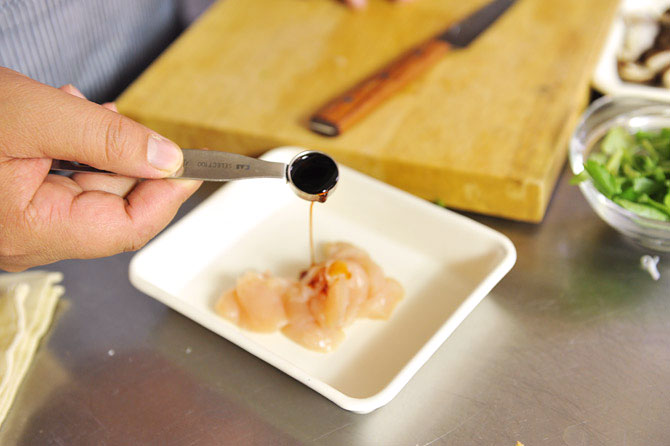 しょうゆを小さじ3分の1、かけておきます。