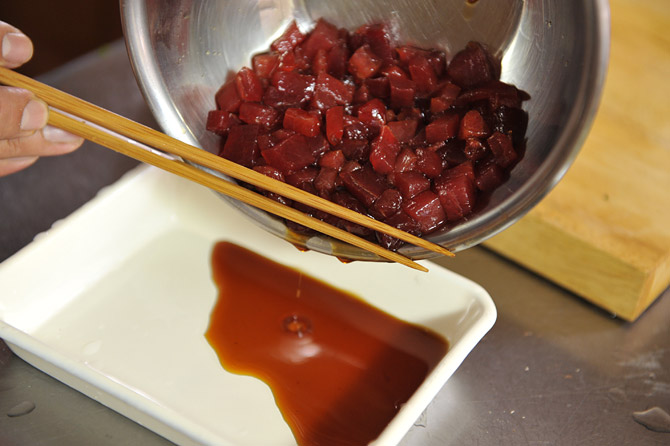 たれを軽く切ります。