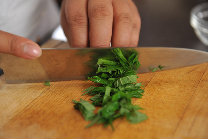ざくざくと、5ミリ幅くらいに切っておきます。