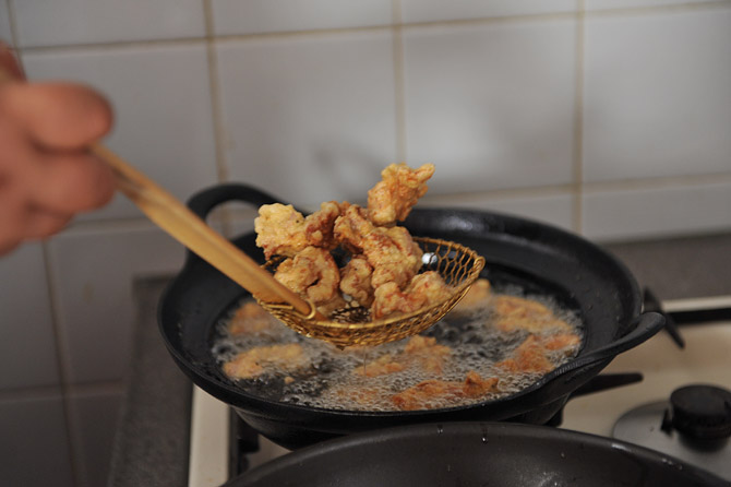 こんがりと揚げ色がついたら、そろそろ大丈夫ですね。