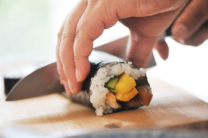 帰省の最後の日、東京にもどるとき、おかあさんが持たせてくれた、太巻き。