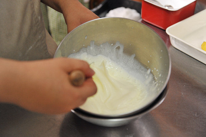 冷やしながら、しっかり泡立てていきます。