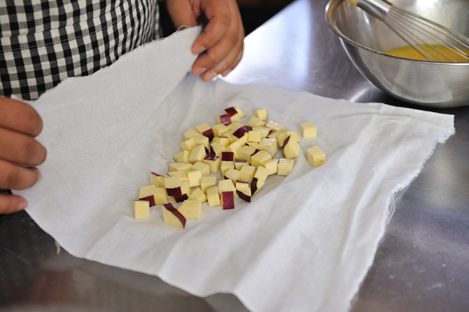 さらに、ふきんや、キッチンペーパーなどにあけて。