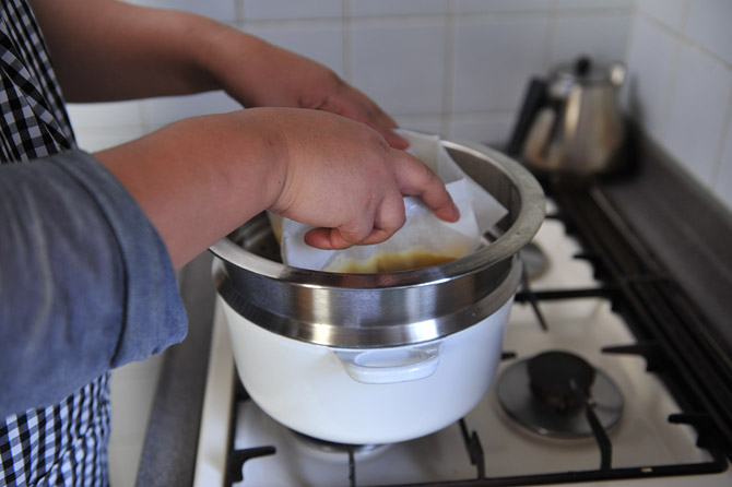 じゅうぶんに熱し、湯気のたった蒸し器に入れます。