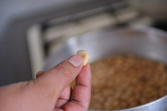 指でつまんでつぶれるくらいまで煮えたら、大豆の下準備が完了です。