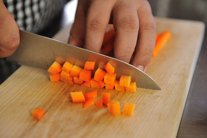 そして1センチ幅の角切りにします。