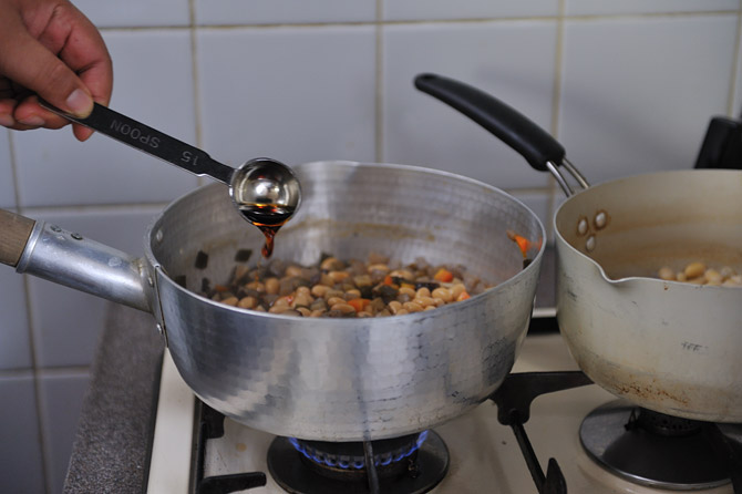残りのうすくちしょうゆ、大さじ1と1/2を加えます。