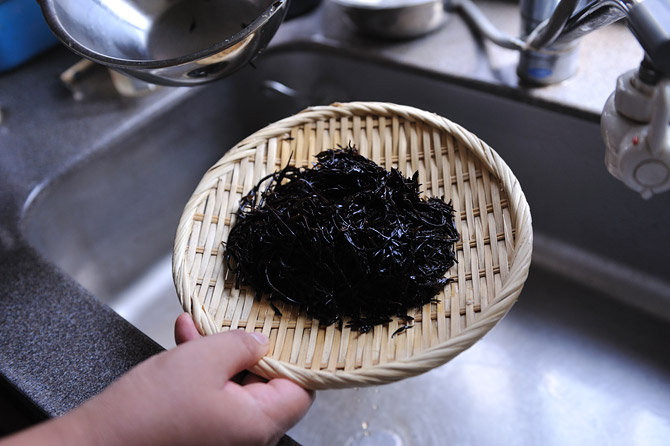 ひじきは食べてみて、歯ごたえがのこるくらいまでが目安です。