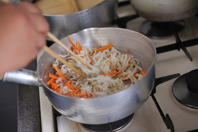 全体に油がまわるように、炒めます。